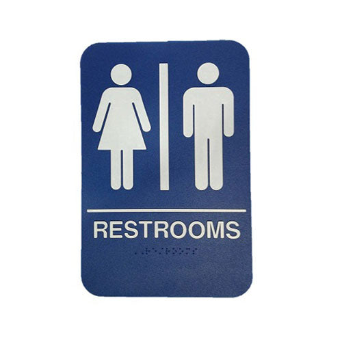 Don Jo - HS-9070-03 ADA Restrooms Sign, Blue with Braille, 6" x 9"