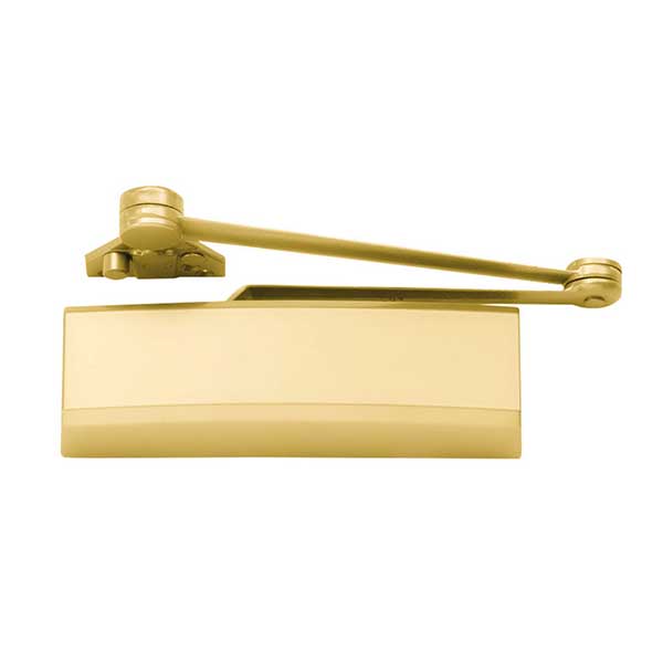 This cast aluminum door closer offers premium features like powder coating, a full complement bearing, All-Weather Fluid, and a 25-year warranty.
