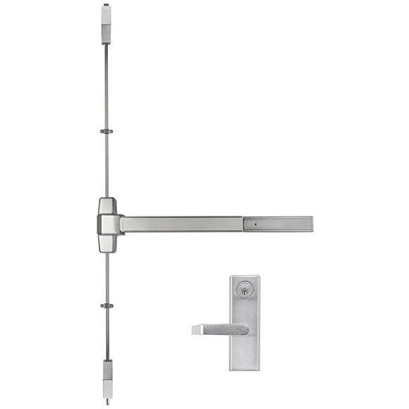 M9900VR x MESC600A Surface Vertical Rod Panic Exit Device with Escutcheon Lever Trim, Entry/Classroom Function