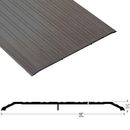 The 2550 Series Utility Threshold is a robust and ADA compliant transition piece, 10" wide, crafted from durable aluminum for sustained high performance. With a height of 1/2", it not only meets accessibility standards but also facilitates insulation between rooms while ensuring a seamless and fire-rated transition between different floor surfaces.