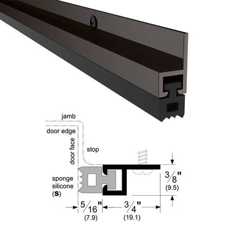 Designed to be applied to the “stop” perimeter of the door frame. Includes a silicone seal with aluminum framing. The silicone seal compresses against the door, to create a tight weatherproof seal.