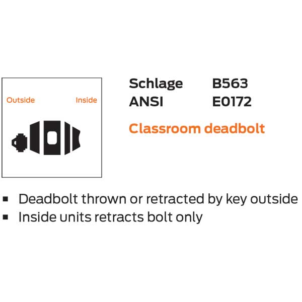 Schlage B563P Grade 2 Classroom Deadbolt, Conventional Cylinder, Schlage C Keyway, Adjustable 2-3/8" and 2-3/4" Backset