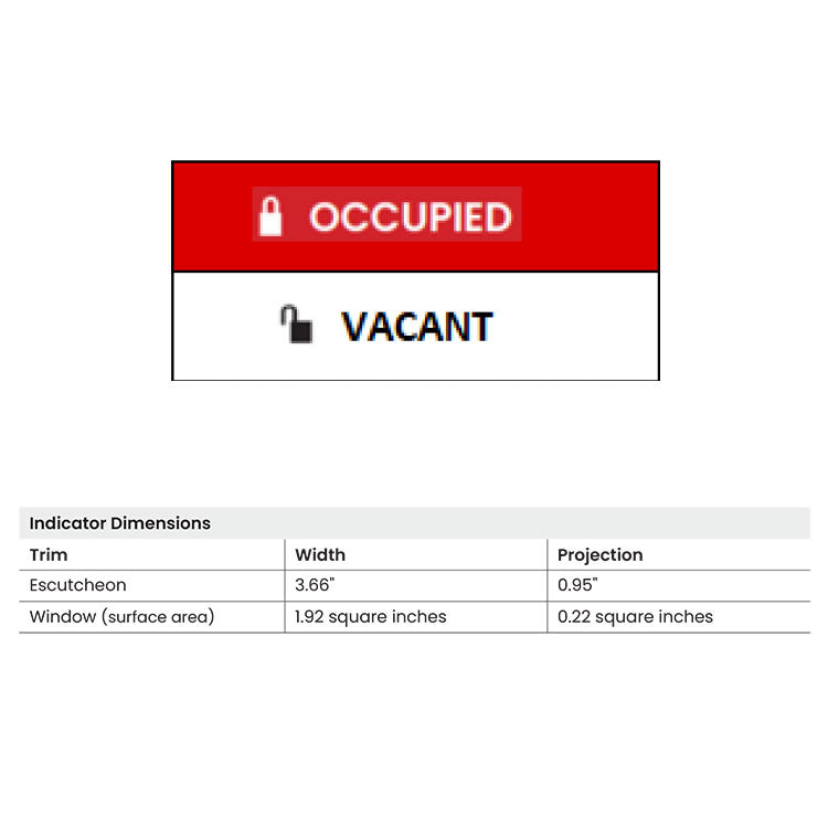 - Indicator window size is unmatched in the market using an escutcheon style trim to allow the message to run the full width of the lock at a height of .6” for maximum visibility