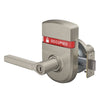 ANSI Function F76 - Lever with emergency release recessed slot outside; push button in lever inside; springlatch. In unlocked state latch is retracted by either lever. Outside lever is made inoperative by pushing button on inside lever. Rotating inside lever retracts latch and releases button unlocking outside lever; closing door also unlocks preventing lockout. Emergency unlock: an emergency key (sold separate) or small, flat screwdriver inserted in outside lever and turned releases button to unlock. Inside lever always free for immediate egress