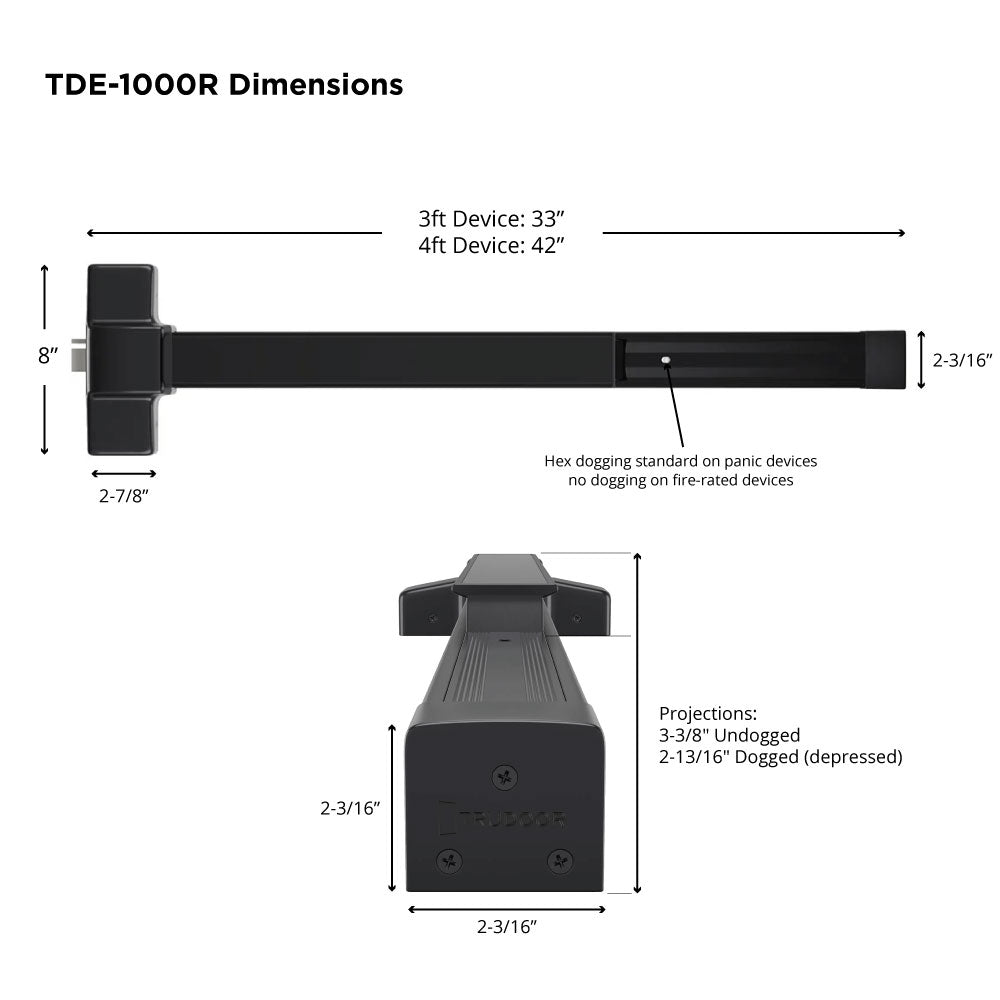 Trudoor TDE-1000R-L Heavy-Duty Grade-1 Rim Exit Device with Escutcheon Lever Trim