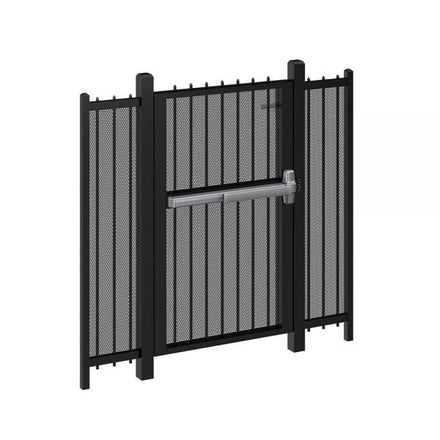 Von Duprin’s pool gate hardware is designed and built to meet the very specific needs of pool enclosures. This customized hardware solution from Von Duprin features an exit device paired with special trim to address the specific application need for pool enclosures with self-closing/self-latching gates.