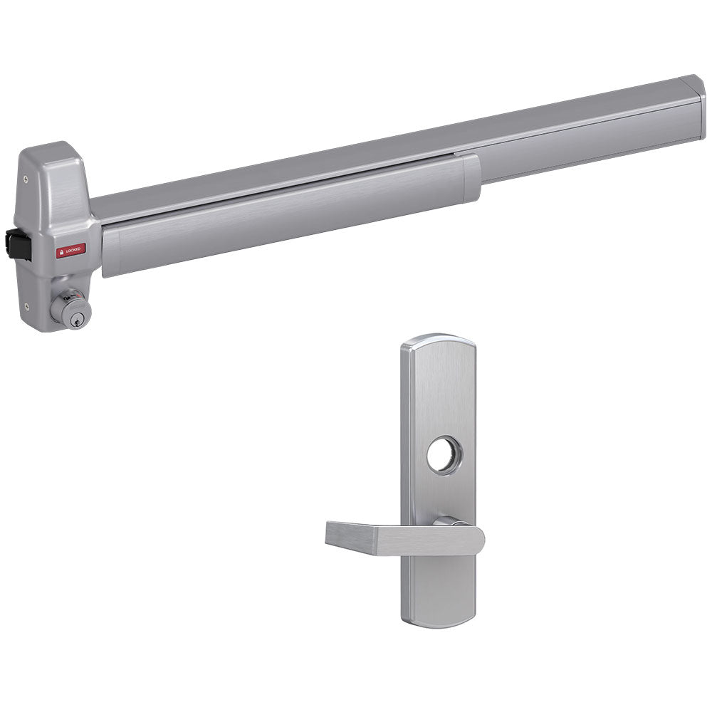 Von Duprin 98L-_-F-2SI Grade 1 Fire-Rated Rim Exit Device with Lever Trim, 2SI Double Cylinder with Security Indicator, Wide Stile Pushpad, Classroom Function Lever with Escutcheon, US26D/626 Satin Chrome Finish