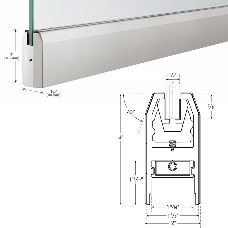 The tapered 4″ mechanical glass door rail meets ADA requirements and is GreenCircle Certified. Its one-piece compression system is pre-assembled and has dry glaze feature for easy installation.
