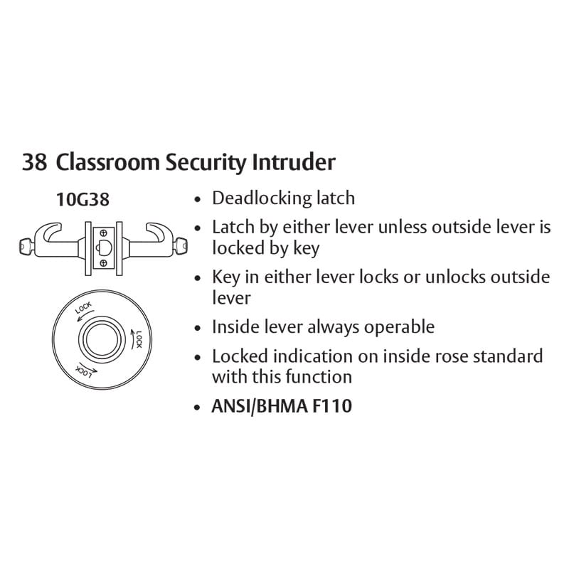 Sargent - 28-10G38-LL Heavy Duty Classroom Security Intruder Lever Lockset, L Lever, L Rose