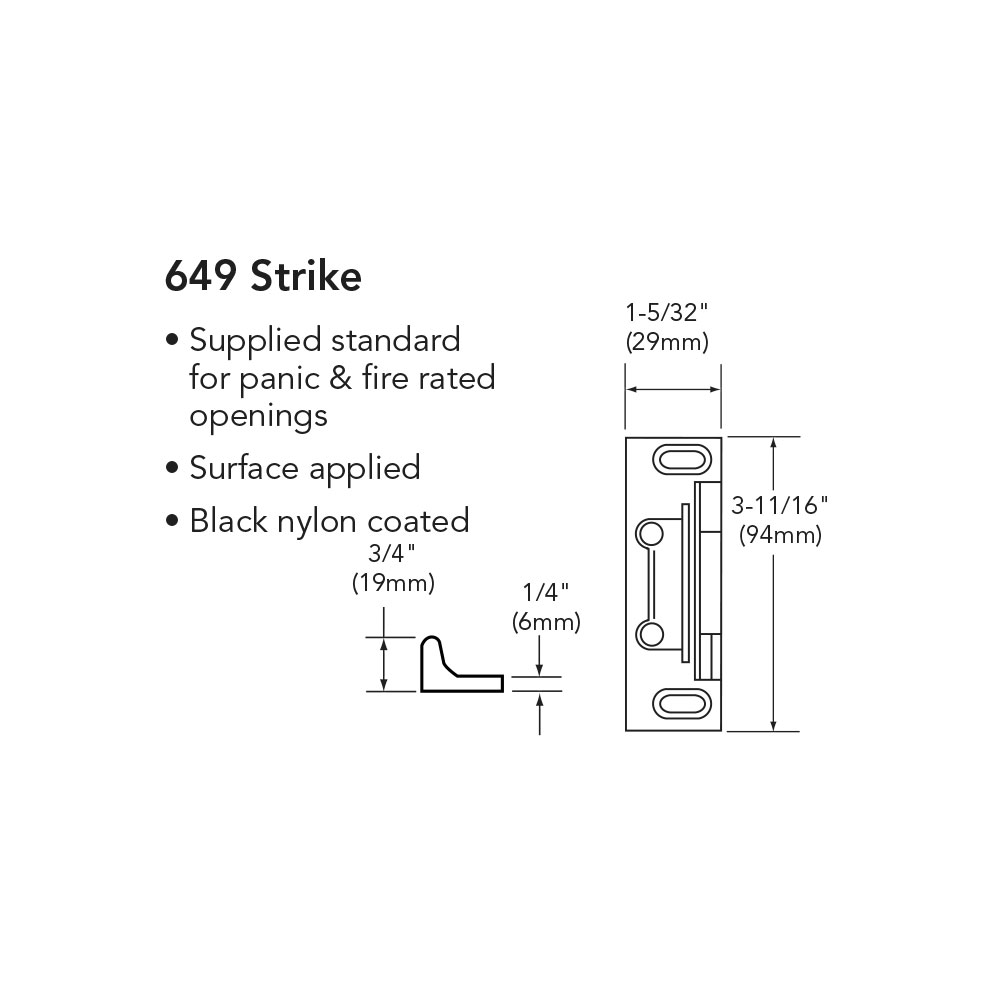 Sargent 649 Standard Exit Device Strike, (12)2828, (12)3828, 5100, (12)5800, 8500, (12)8800, (12)9800 – Black Nylon Coated