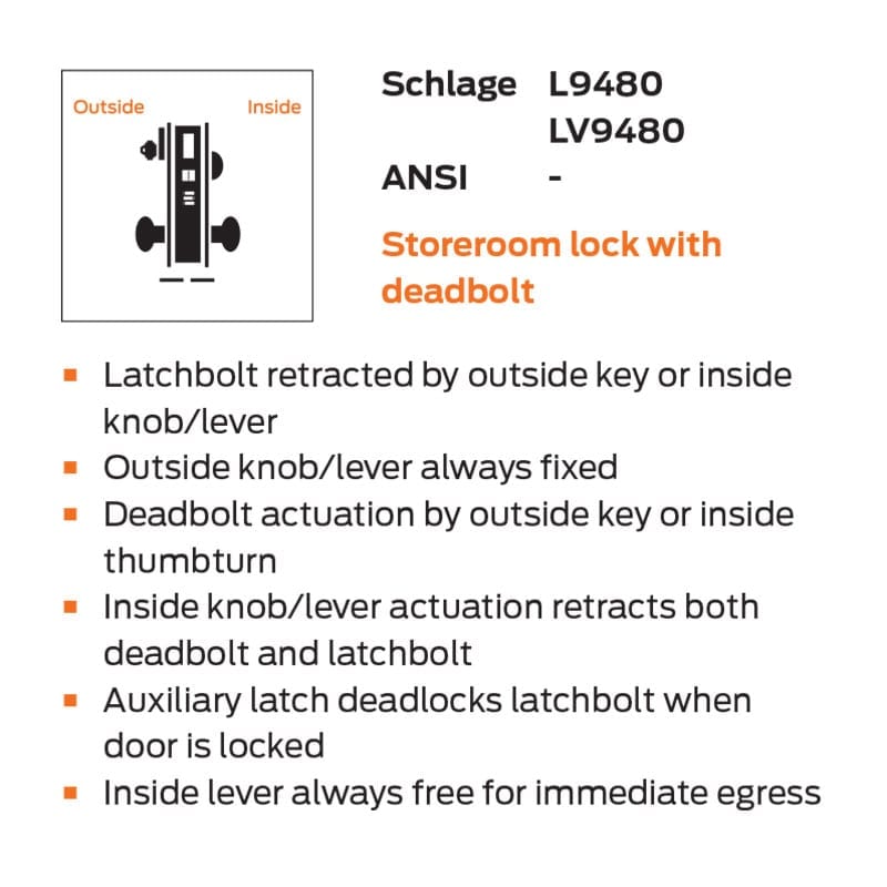 Schlage L9480P Storeroom Mortise Lock, 06A Design, Conventional Cylinder