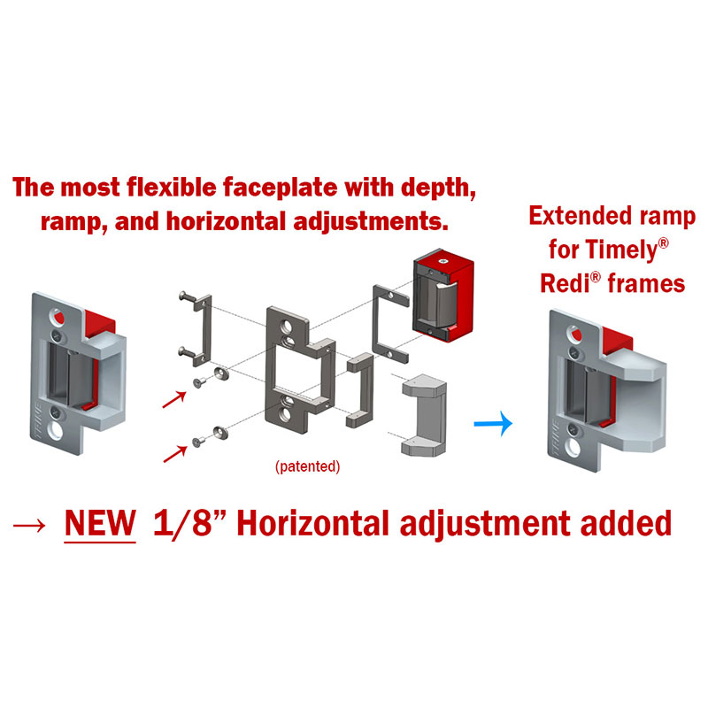 The smallest fire-rated electric strike solution that goes where other electric strikes cannot. Features the patented horizontal adjustment feature — Guaranteed not to move — to both the small and tall faceplates. This is the “do more” and “cut less” electric strike you’ve been looking for. This is the smallest electric strike that fits both Timely and Redi frame ANSI cutouts.