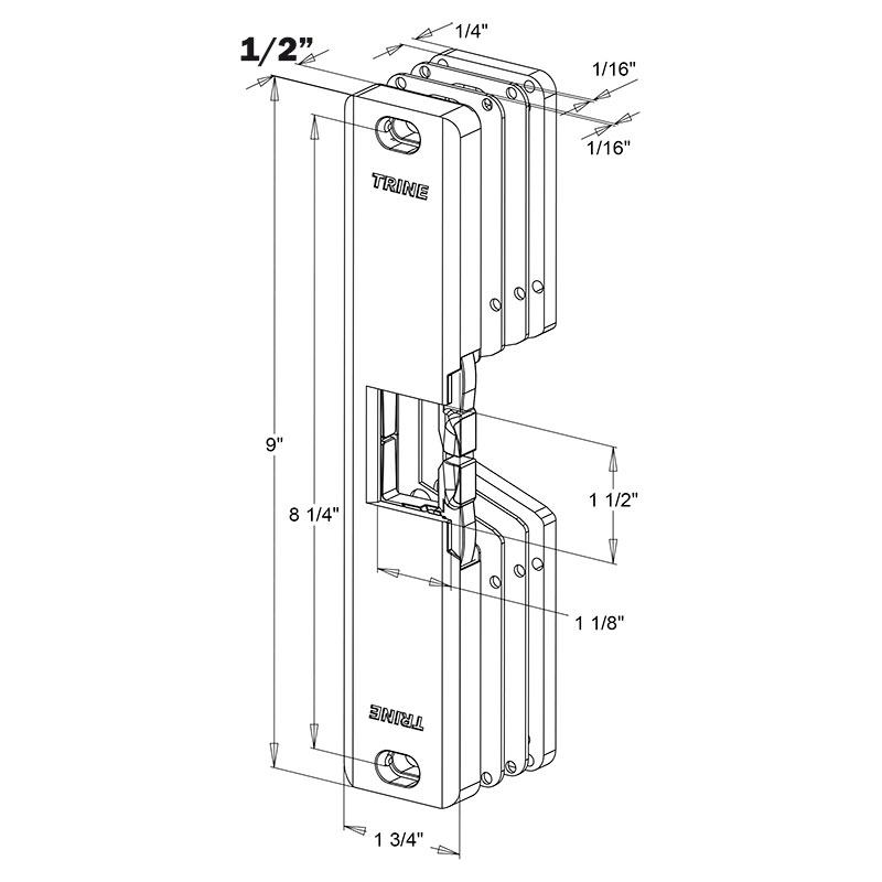- 1/2” thick Surface Mount electric strike comes with 1/4” and two (2) 1/16” Spacers plates — the most versatile rim panic strike provides the flexibility of 6 different sizes!