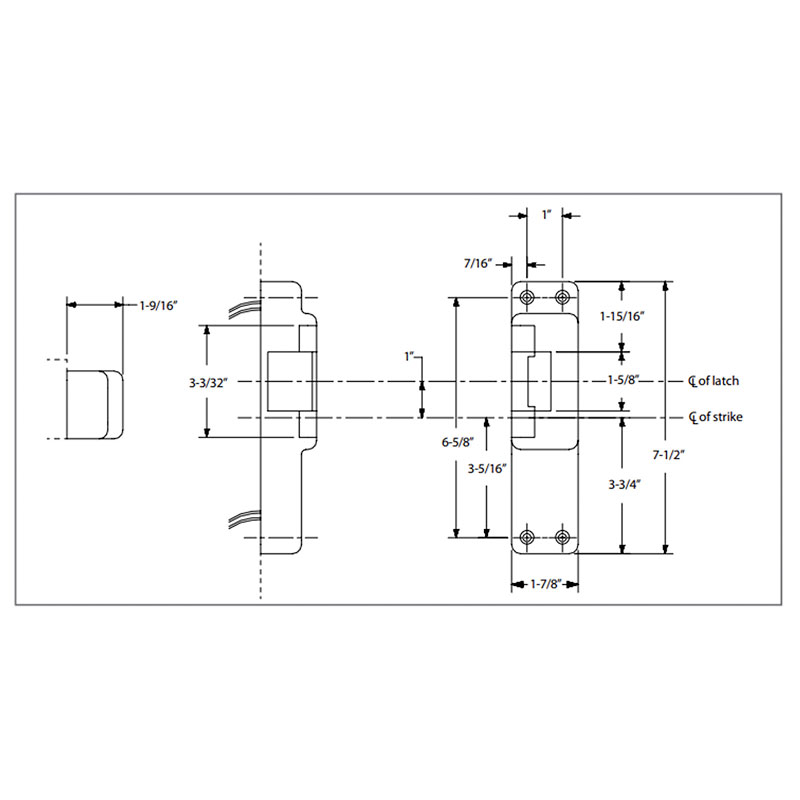 - Fail-secure standard: Requires power to be applied to unlock the strike lip. On loss of power, the strike lip is locked. Fire-rated.