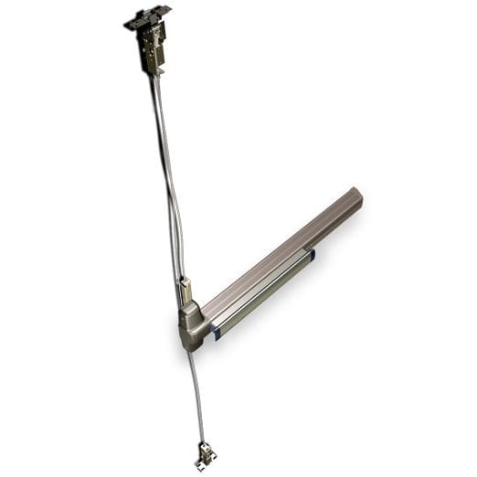 What makes the Von Duprin concealed vertical cable solutions truly unique is their ability to perform in less than ideal conditions. The flexibility and slack in the cable system allow the device to function properly even if the top latch, device centerline, and bottom latch are not vertically aligned. The concealed vertical system is not as sensitive to changing door conditions and requires significantly less maintenance than a traditional rod over its lifetime. If a simple repair or modification is required, the cable system and latches can be removed and reinstalled by one person without removing the door from the frame.