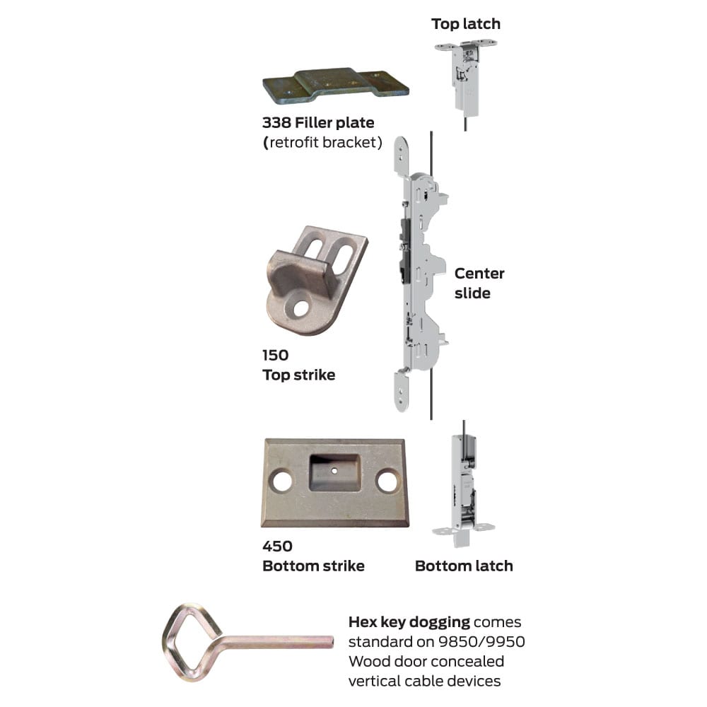The Von Duprin wood door concealed (WDC) system is designed specifically for wood door applications where exit devices are required. Instead of traditional rods, concealed vertical cables are utilized. Making use of this proven technology enables quick installation and allows for easy maintenance.
