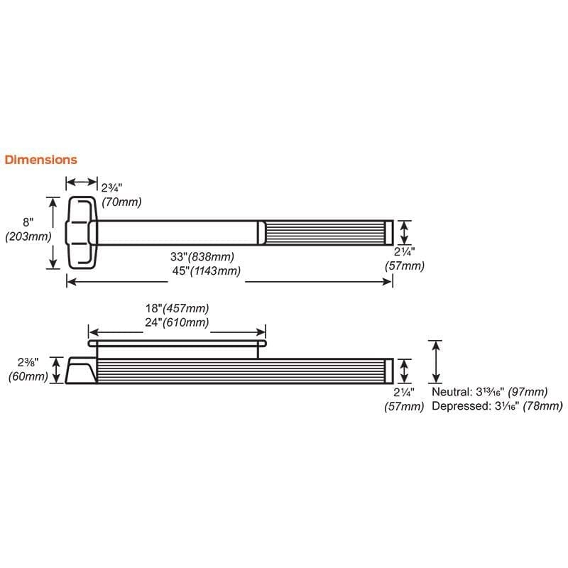 | Projections | Pushbar Neutral – 3-13/16" – Pushbar Depressed – 3-1/16" |