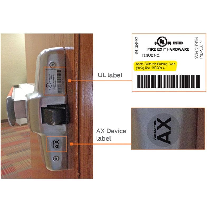 The AX Series is subject to Von Duprin’s standard testing to ensure durability and functionality. The AX Series is the first UL-certified exit device to meet the new California Building Code requirements for accessible openings. This certification will help mitigate the risk of project delays, liability, and lost time and money in having to re-specify openings.